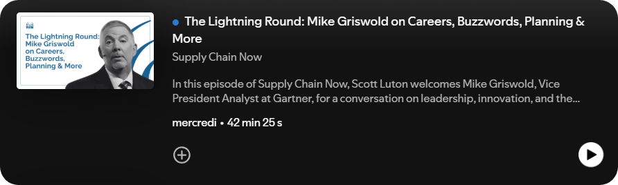 Mike, vice-président analyste chez Gartner, échange avec Scott Luton sur le futur du leadership logistique. Il y compare la planification à la préparation d’un tournoi de golf : tout repose sur la précision, la résilience et la synergie entre humain et technologie. « L’IA ne remplace pas l’expérience ; elle la renforce. »