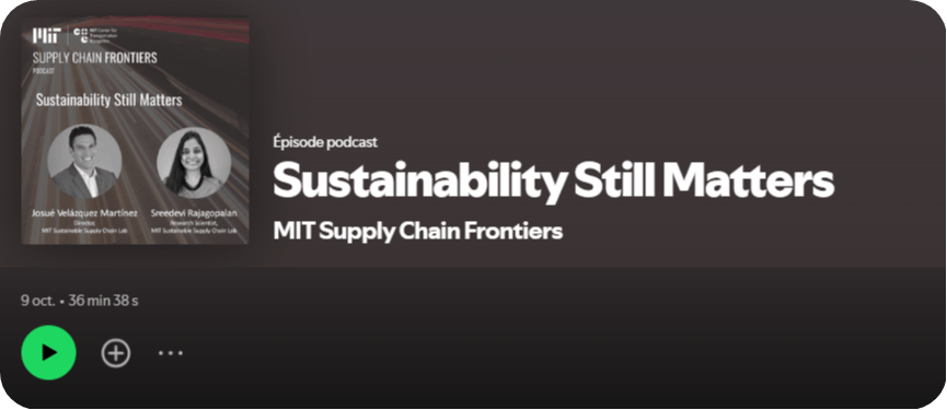 Dans cet épisode de Supply Chain Frontiers du MIT Center for Transportation & Logistics, Dr Josué Velázquez Martínez, directeur du MIT Sustainable Supply Chain Lab, analyse les conclusions du rapport 2025 sur la durabilité des chaînes d’approvisionnement. Son message central est : la durabilité reste une priorité stratégique, même lorsque la pression réglementaire diminue.